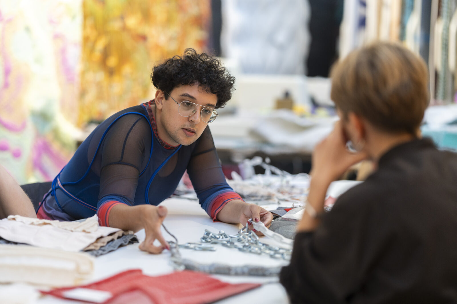 After several weeks of online work and sessions at the TextielLab, participants were given the unique opportunity to experiment with the lab’s machines alongside the product developers, from knitting and weaving to passementerie. They were guided throughout by two mentors: designer Kiki van Eijk and Kvadrat designer Nina Lolle. Intensive design research took place on site, making the lab this year a true playground for experimentation and discovery. In addition, there was an extensive (online) lecture programme featuring experts from the field, including Sanne Schuurman of Envisions, Mae Engelgeer, Jos Klarenbeek, Kiki van Eijk, Ursula Wagner and Samira Boon.