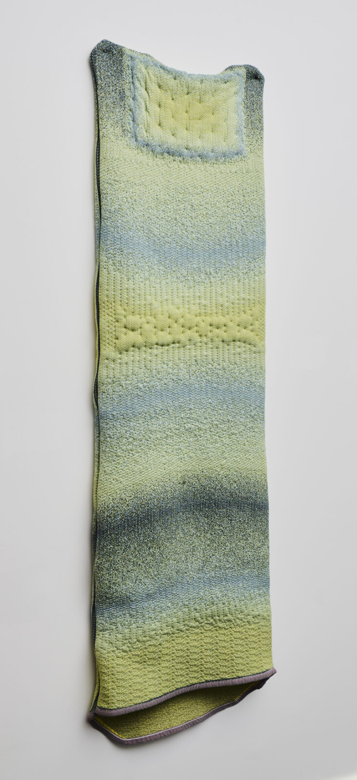‘EC Knit’ is a knitted bed for night trains that is light, ergonomic, and intimate, offering an alternative to conventional sleeping compartments. The project explores the possibilities of 3D knitting using the circular knitting technique. Ascençao used additional filler yarns to provide strength and comfort.
