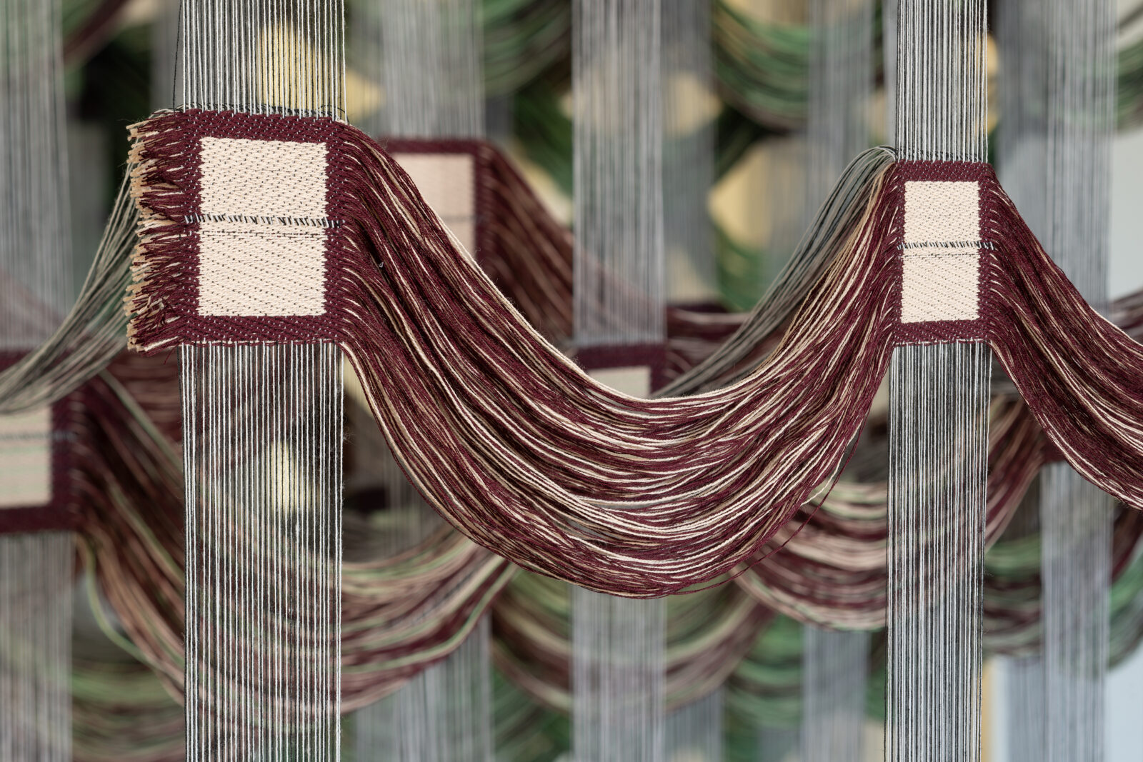 The project ‘WOVEN VOXEL’ by Emilie Palle Holm consists of two impressive Jacquard‑woven sculptures. In the work, Holm breaks through the flat, two‑dimensional limitation of weaving by stretching the pixels into the third dimension. She releases certain warp threads and incorporates movable elements directly into the weave, allowing the structures to form tangible, spatial sculptures.