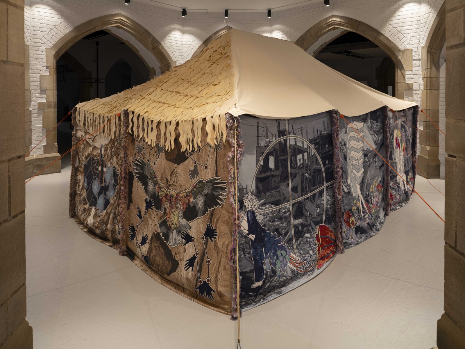 The work was exhibited at the British Textile Biennial in East Lancashire, United Kingdom, from 2 October to 2 November 2025.