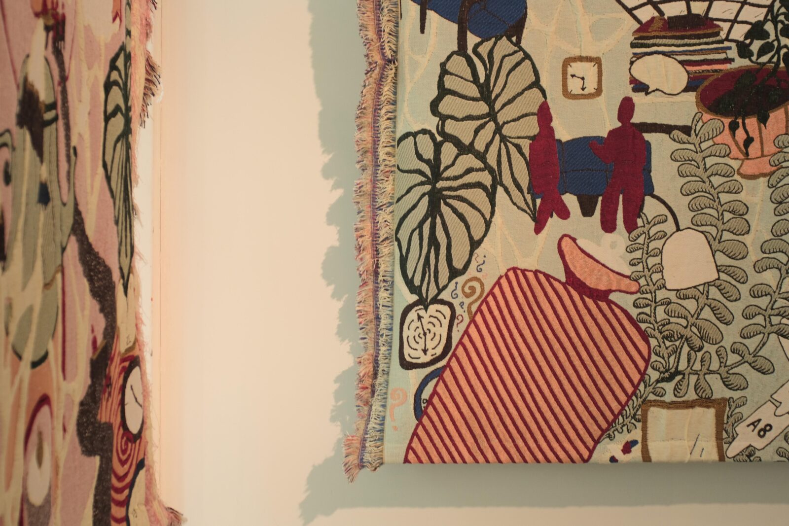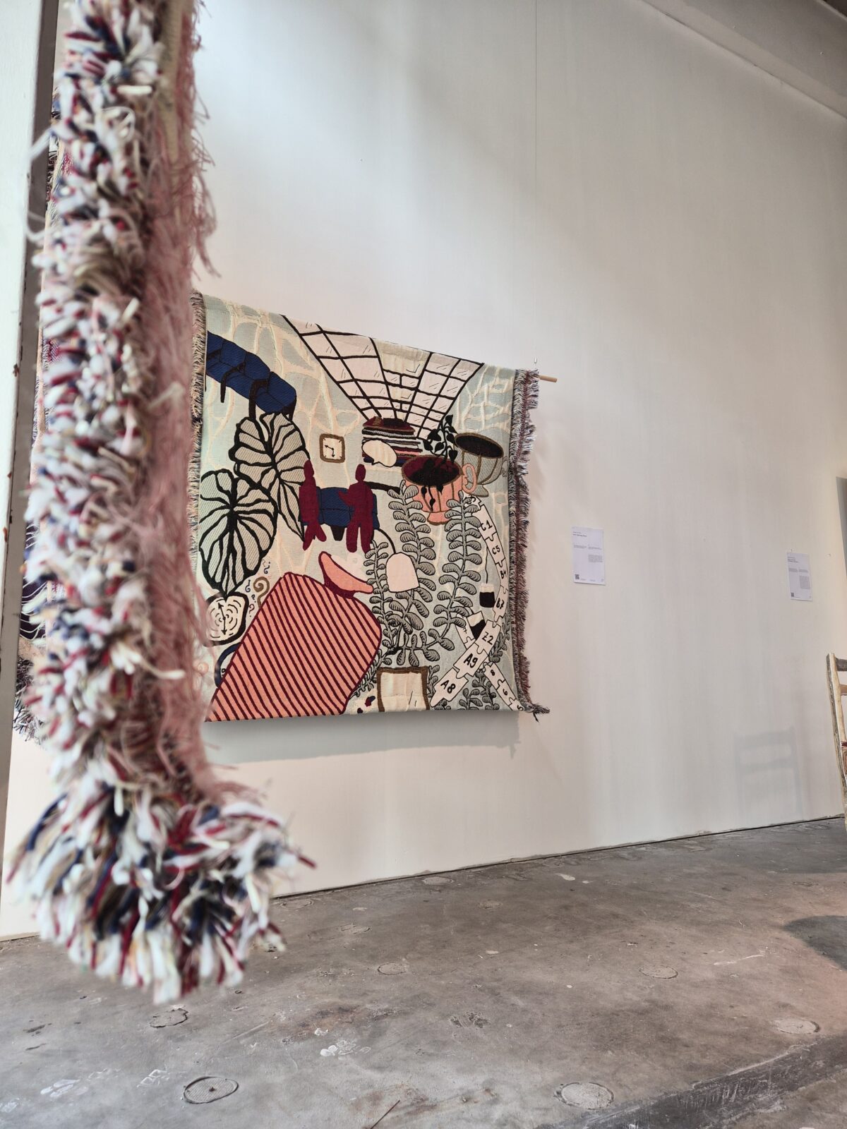Soft Waiting Room’ by Sam van Dok is a Jacquard-woven wall hanging. The work transforms the often cold and neutral atmosphere of a waiting room by adding warmth, texture, and small moments of discovery. The tapestry collage features illustrations of plants, medical practices, and human interactions, with hidden details and subtle visual “easter eggs” that invite viewers to slow down, observe, and wonder. Based on Van Dok’s own drawings, the design clearly reflects her personal style and encourages a soft, tactile experience.
