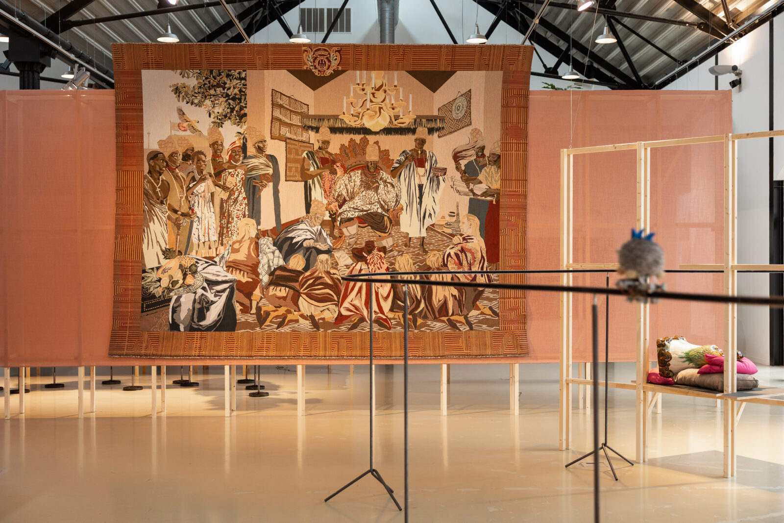 The work forms a deliberate counterpoint to colonial representations from the seventeenth and eighteenth centuries, as seen in the so-called Old Indies tapestries, luxurious works produced in the Gobelins workshops in Paris. By interweaving designs from Europe and Kongo, Baloji and Fromont demonstrate how history can be narrated differently.